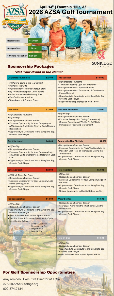 Join AZSA for a high-energy day of golf and connections at SunRidge Canyon. Play, network, and have some fun with Arizona’s self-storage community.
